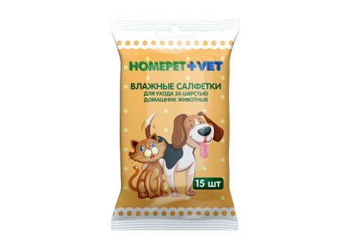 Homepet Vet Влажные салфетки Хоумпет для домашних животных для Ухода за Шерстью 1 х 15 шт