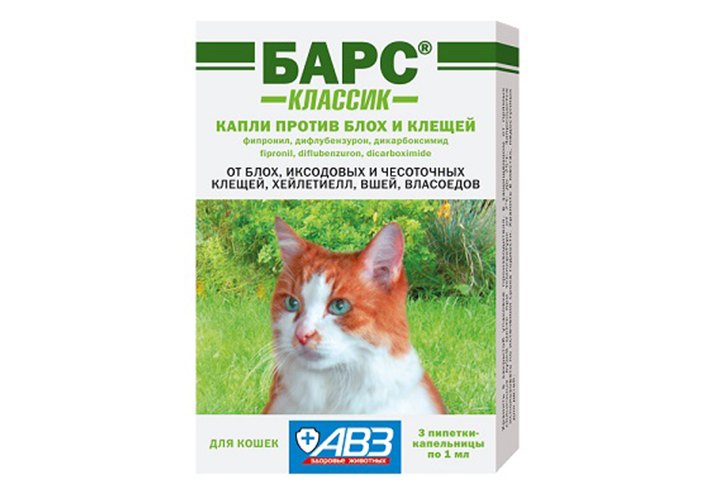 АгроВетЗащита Барс Классик Капли против блох и клещей для кошек 3 х 1,0 мл