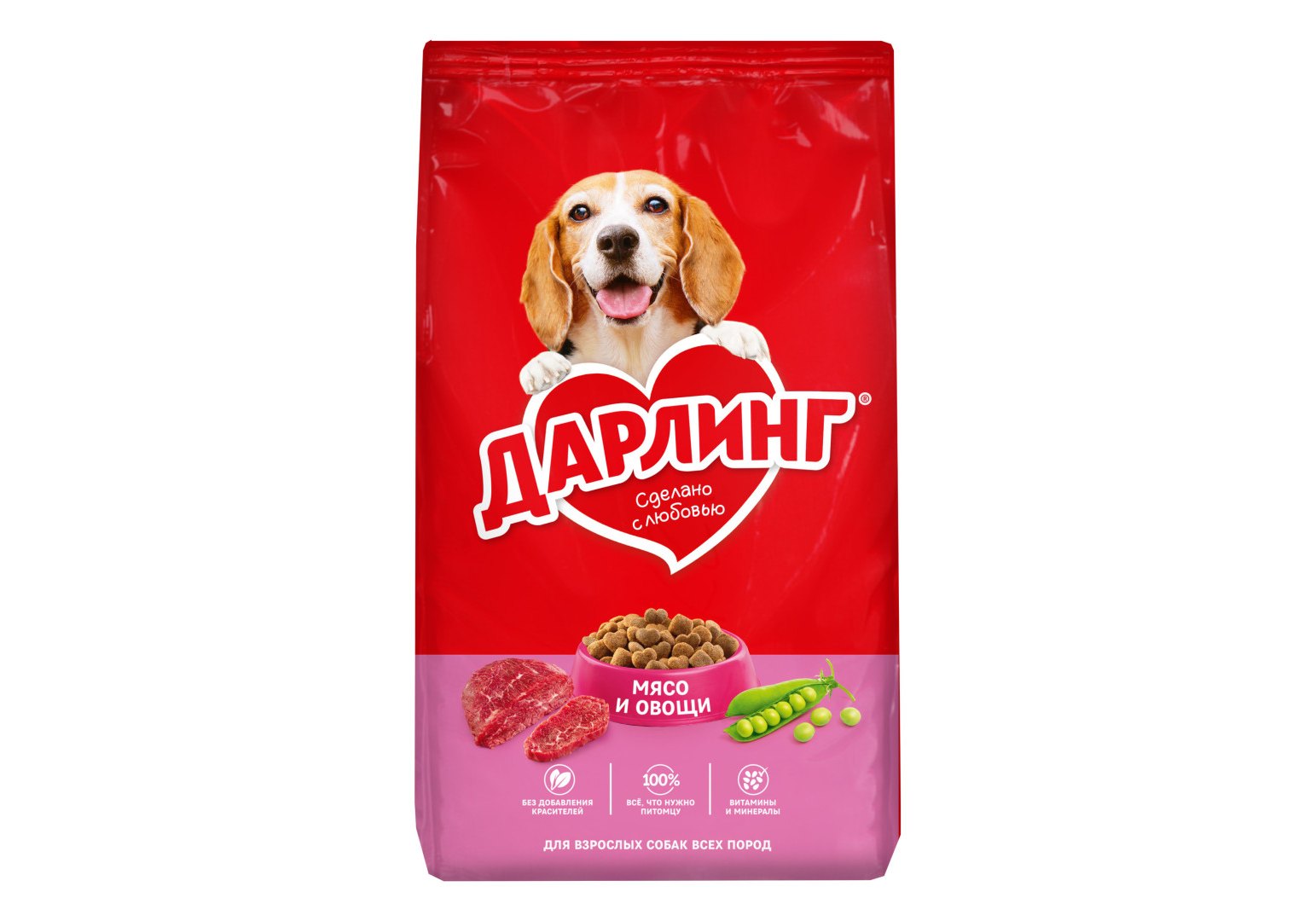 Корм ДАРЛИНГ для собак – это сбалансированное питание, сделанное с любовью, чтобы Вы могли заботиться о вашем питомце каждый день. Корм ДАРЛИНГ изготовлен из качественных ингредиентов, а также содержит витамины и минералы, необходимые Вашей собаке, чтобы быть здоровой, активной и дарить радость Вашей семье. Без добавления красителей.