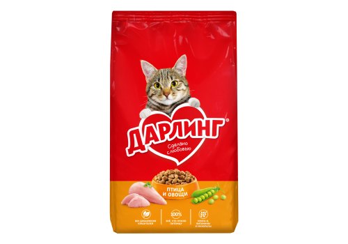 Корм ДАРЛИНГ для кошек - это сбалансированное питание, в котором содержится на 100% все, что нужно кошке каждый день. Он сделан с любовью из качественных ингредиентов, а также содержит Омега-6 жирные кислоты и витамины, необходимые Вашей кошке, чтобы быть здоровой, активной и дарить радость Вашей семье.