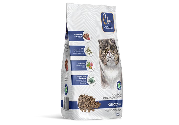 Clan Classic Choosy 29-13 Сухой корм Клан для взрослых кошек Индейка с кроликом 400 г