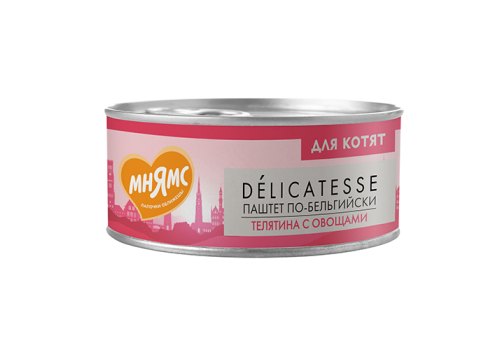 Мнямс Delicatesse Влажный корм Консервы для Котят Паштет по-бельгийски Телятина с овощами (цена за упаковку) 100г х 16шт