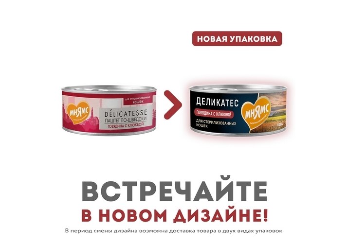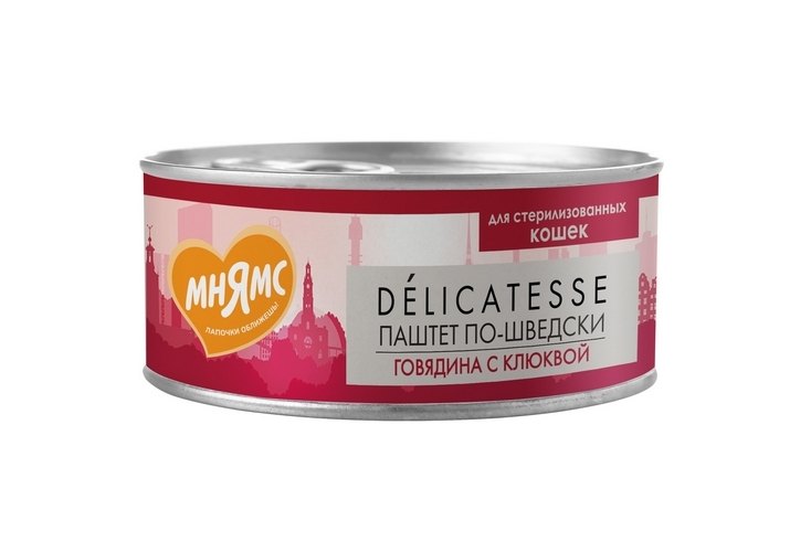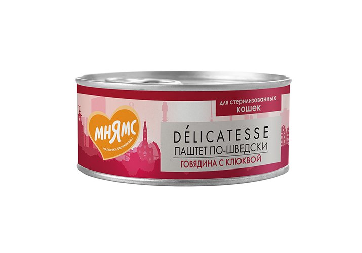 Мнямс Delicatesse Влажный корм Консервы для Cтерилизованных кошек Паштет по-шведски Говядина с клюквой (цена за упаковку) 100г х 16шт