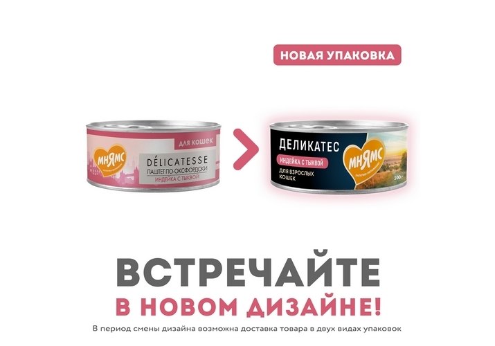 Мнямс Delicatesse Влажный корм Консервы для кошек Паштет по-оксфордски Индейка с тыквой (цена за упаковку) 100г х 16шт