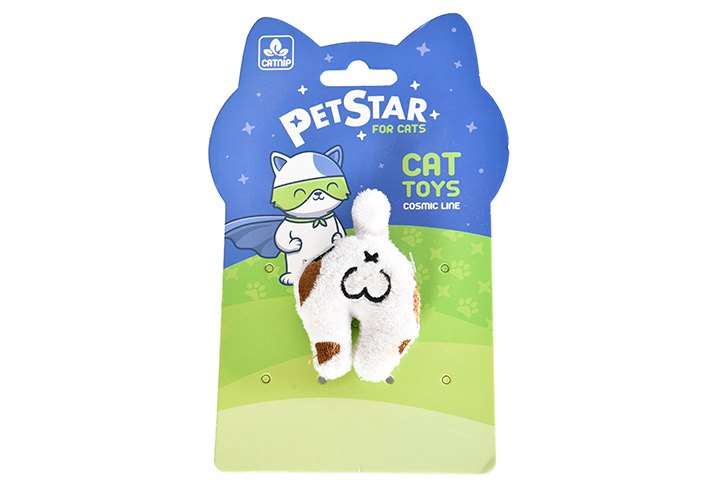 Pet Star Игрушка Пет Стар для кошек ПОПКА КОТА белая-бежевая, плюшевая 4,7 х 7,7 см