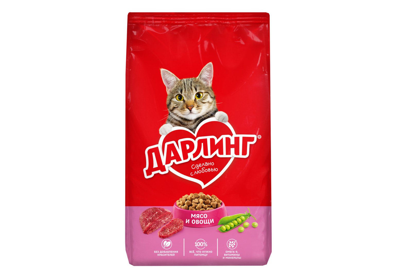Корм ДАРЛИНГ для кошек - это сбалансированное питание, в котором содержится на 100% все, что нужно кошке каждый день. Он сделан с любовью из качественных ингредиентов, а также содержит Омега-6 жирные кислоты и витамины, необходимые Вашей кошке, чтобы быть здоровой, активной и дарить радость Вашей семье.