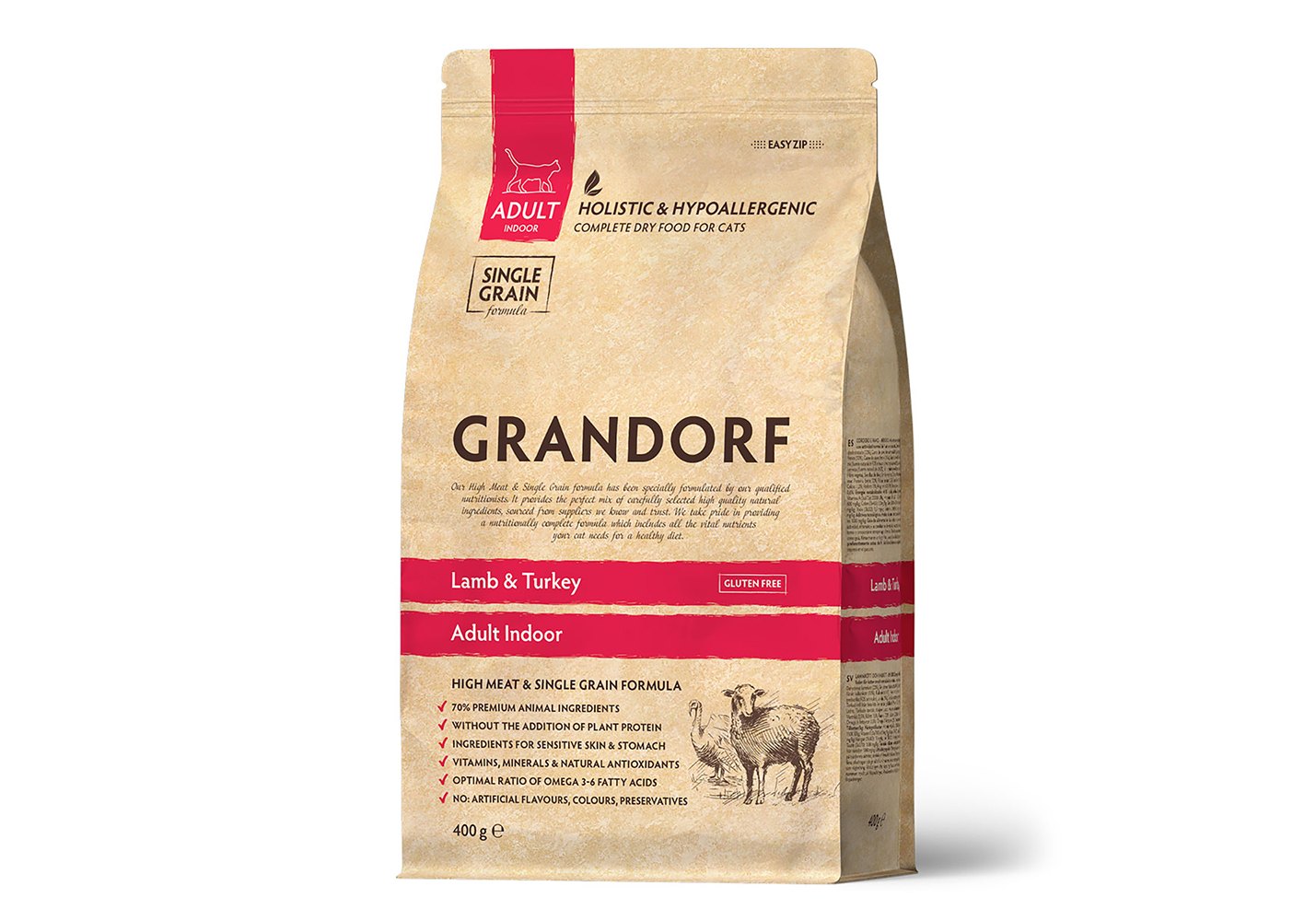 Grandorf Holistic & Hypoallergenic Indoor Lamb & Turkey Сухой корм Грандорф Низкозерновой для домашних кошек Ягненок Индейка 400 г