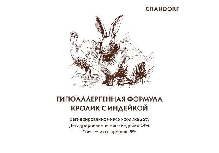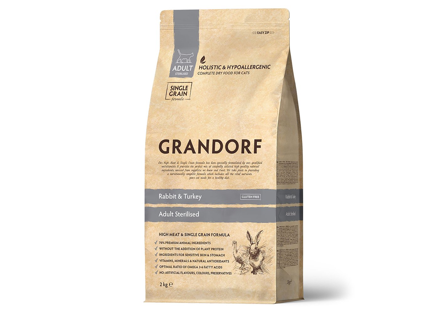 Grandorf Holistic & Hypoallergenic Sterilized Adult Rabbit & Turkey Сухой корм Грандорф Низкозерновой для Стерилизованных кошек Кролик Индейка 2 кг