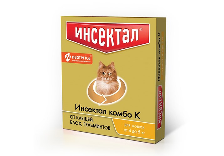 Инсектал комбо К Капли от Клещей, Блох и Гельминтов для кошек весом 4 - 8 кг 1 пипетка
