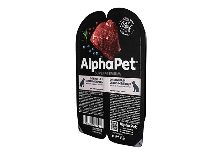 AlphaPet Superpremium Влажный корм Ламистеры АльфаПет для взрослых собак Оленина и северные ягоды (цена за упаковку) 100г х 15шт