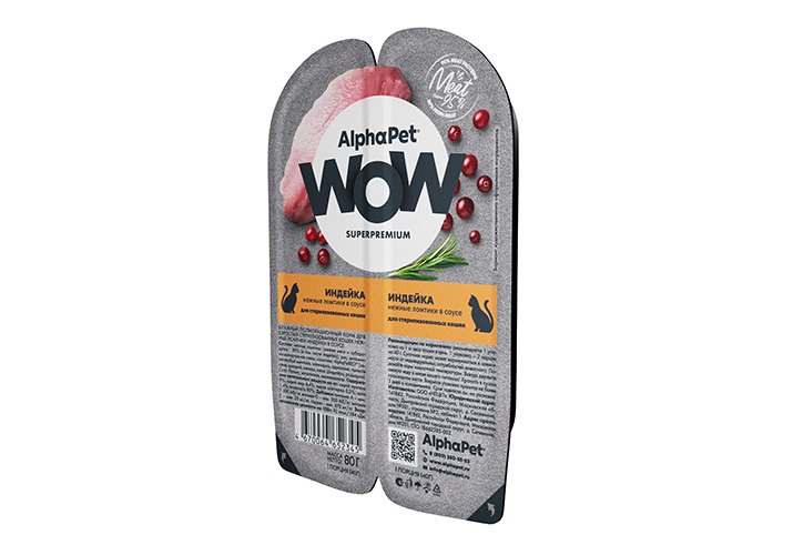 AlphaPet Wow Superpremium Влажный корм Ламистеры АльфаПет для Стерилизованных кошек Индейка (цена за упаковку) 80г х 15шт