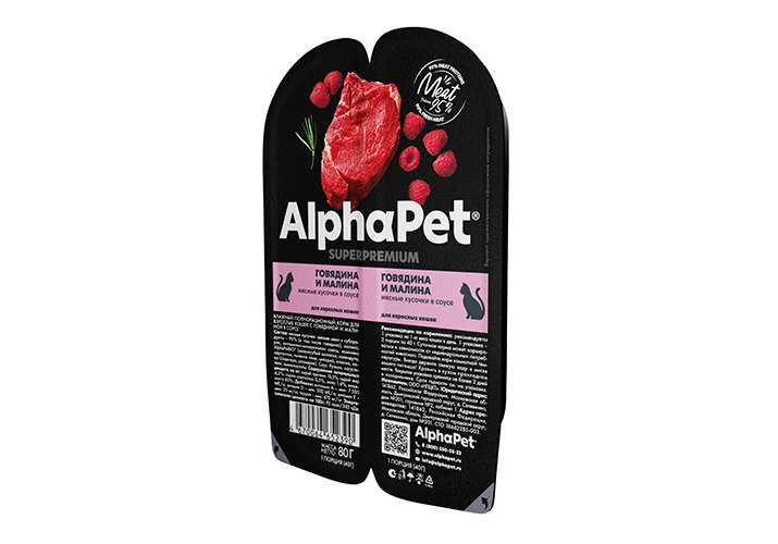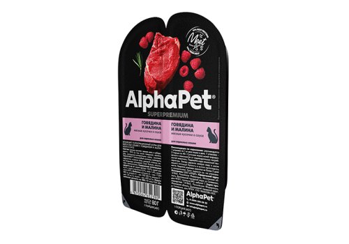 AlphaPet Superpremium Влажный корм Ламистеры АльфаПет для взрослых кошек Говядина и малина (цена за упаковку) 80г х 15шт