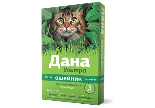 Apicenna ДАНА УЛЬТРА ошейник инсектоакарицидный для кошек зеленый 35 см