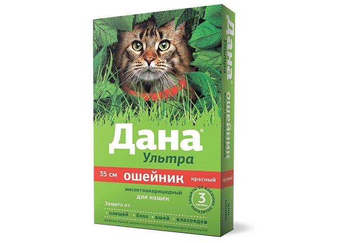 Apicenna ДАНА УЛЬТРА ошейник инсектоакарицидный для кошек красный 35 см