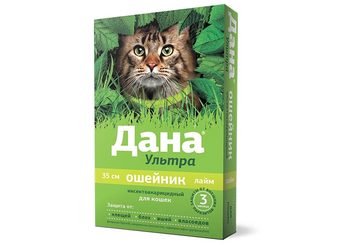 Apicenna ДАНА УЛЬТРА ошейник инсектоакарицидный для кошек лайм 35 см