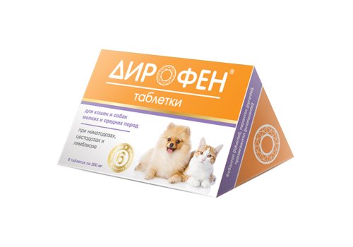 Apicenna ДИРОФЕН для кошек и собак мелких и средних пород антигельметик 6 таб