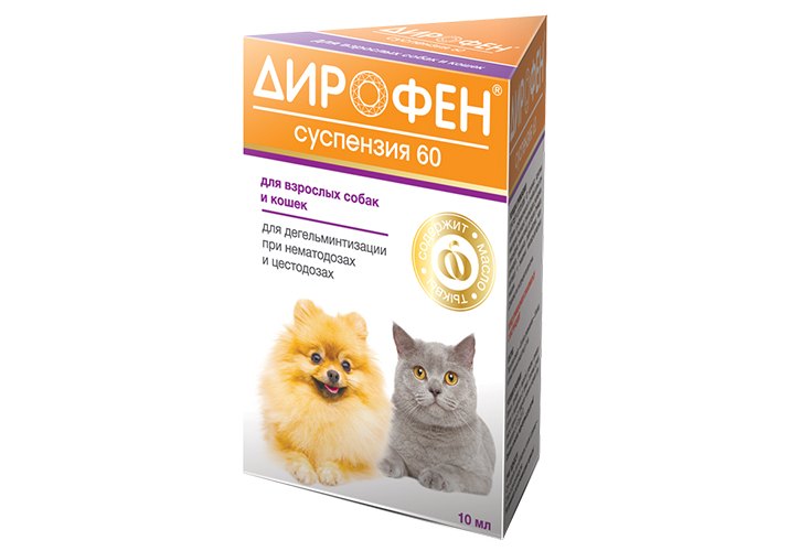 Apicenna ДИРОФЕН-60 суспензия для взрослых собак и кошек с тыквенным маслом антигельметик 10 мл