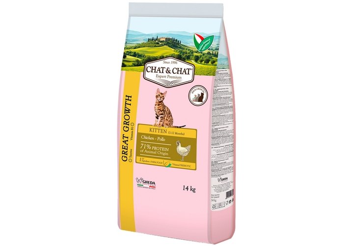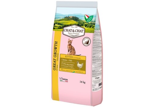 Chat&Chat Kitten Great Growth Chicken Сухой корм Чат и Чат для котят с Цыпленком 14 кг