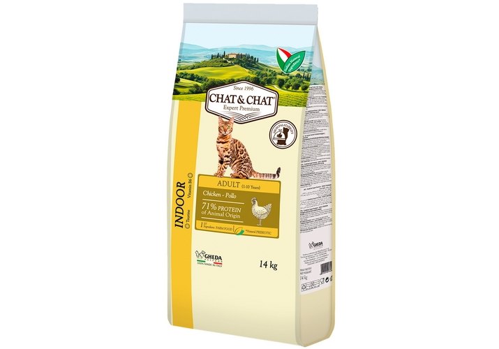 Chat&Chat Adult Indoor Chicken Сухой корм Чат и Чат для взрослых кошек с Цыпленком 14 кг