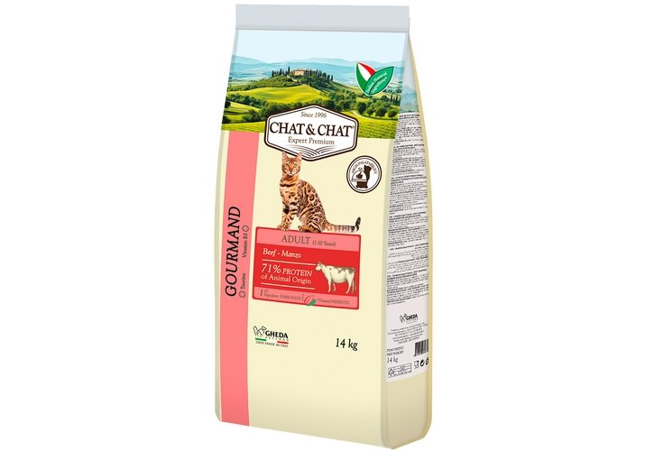 Chat&Chat Adult Gourmand Beef Сухой корм Чат и Чат для взрослых кошек с Говядиной 14 кг