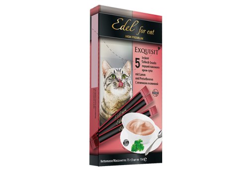 Edel for cat Лакомство Эдель Кэт для кошек Крем-суп с Ягненком и клюквой (цена за упаковку, Россия) 15г х 5шт
