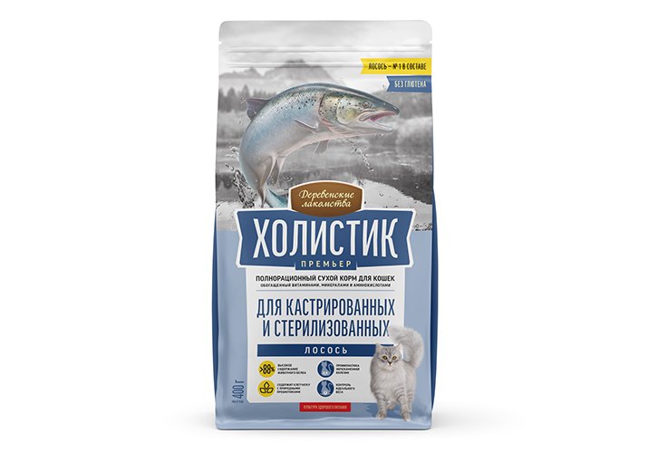 Деревенские лакомства Холистик Премьер Сухой корм для Кастрированных и Стерилизованных кошек Лосось 400 г