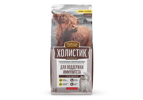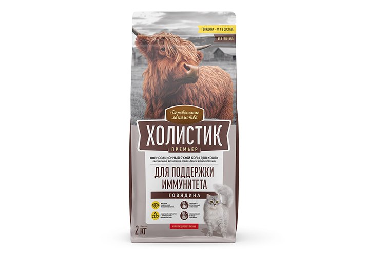 Деревенские лакомства Холистик Премьер Сухой корм для кошек для Поддержки Иммунитета Говядина 2 кг
