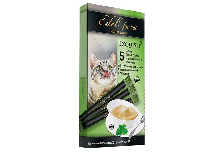 Edel for cat Лакомство Эдель Кэт для кошек Крем-суп с Ливерной колбасой и овощами (цена за упаковку, Россия) 15г х 5шт