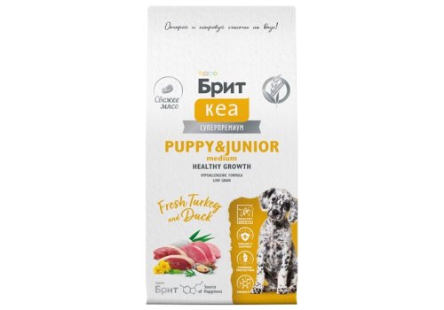 Брит Кеа Puppy & Junior Medium Healthy Growth Turkey Duck Сухой корм для Щенков Средних пород Индейка Утка 1,5 кг