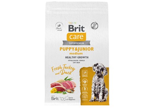 Brit Care Puppy & Junior Medium Healthy Growth Turkey Duck Сухой корм Брит для Щенков Средних пород Индейка Утка 3 кг