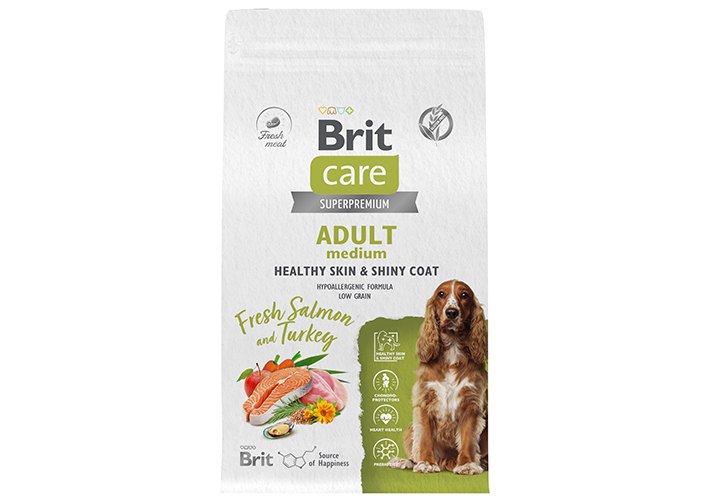 Brit Care Adult Medium Healthy Skin & Shiny Coat Salmon Turkey Сухой корм Брит для взрослых собак Средних пород Здоровая Кожа и Шерсть Лосось Индейка 1,5 кг