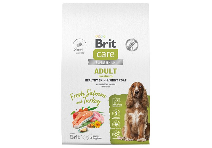 Brit Care Adult Medium Healthy Skin & Shiny Coat Salmon Turkey Сухой корм Брит для взрослых собак Средних пород Здоровая Кожа и Шерсть Лосось Индейка 12 кг