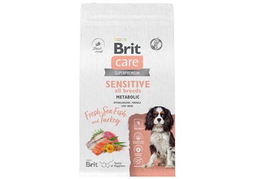 Brit Care Adult Sensitive Metabolic Sea Fish Turkey Сухой корм Брит для взрослых собак Улучшение обмена веществ Морская рыба Индейка 3 кг