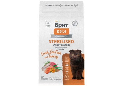 Брит Кеа Sterilised Weight Control Sea Fish Turkey Сухой корм для взрослых Стерилизованных кошек Морская рыба Индейка 1,5 кг