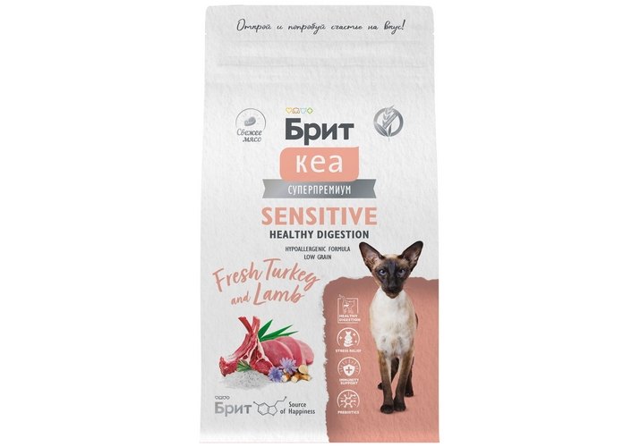 Брит Кеа Sensitive Healthy Digestion Turkey Lamb Сухой корм для взрослых кошек с Чувствительным пищеварением Индейка Ягненок 1,5 кг