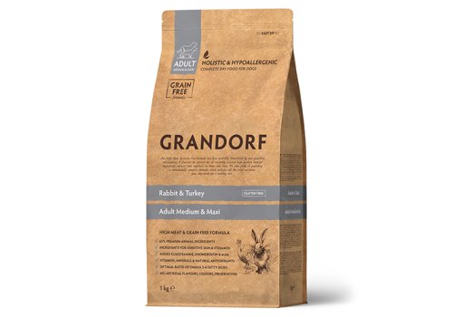 Grandorf Holistic & Hypoallergenic Medium Maxi Rabbit & Turkey Сухой корм Грандорф Беззерновой для взрослых собак Средних и Крупных пород Кролик Индейка 1 кг