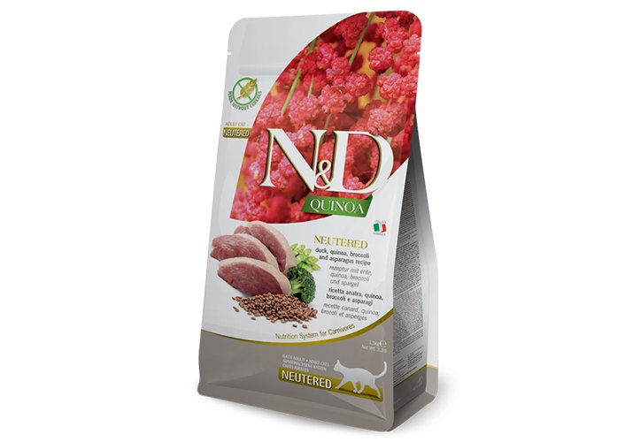Farmina N&D Quinoa Line Neutered Adult Duck Broccoli Asparagus Grain free Сухой Беззерновой корм Фармина для взрослых Стерилизованных кошек Утка с Киноа 300 г