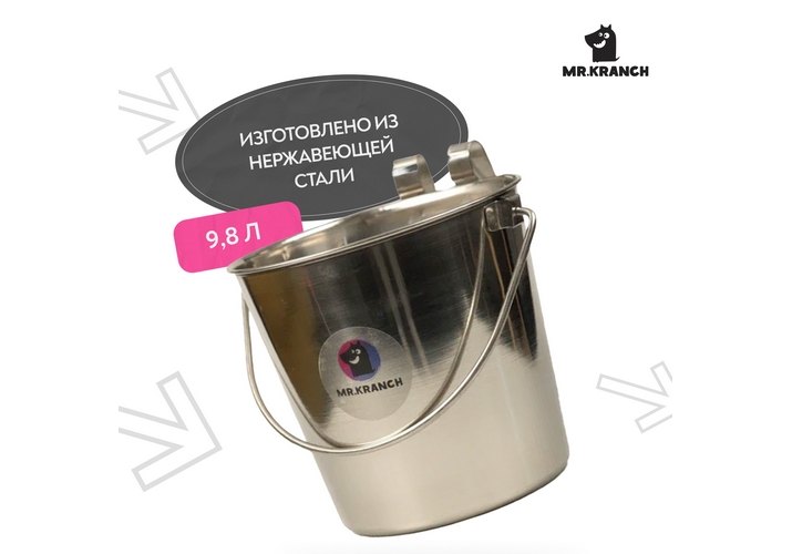 Mr.Kranch Ведро Мистер Кранч с креплением для клеток и вольеров нержавеющая сталь 9,8 л