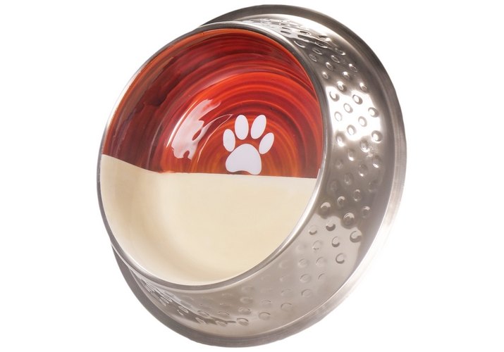 Mr.Kranch Candy Миска Мистер Кранч для животных с Керамическим покрытием Нескользящее основание нержавеющая сталь Коричневая с белым 850 мл