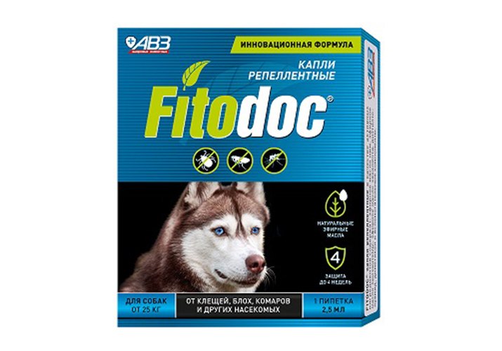 Fitodoc Капли репеллентные Фитодок для собак веосм от 25 кг от Клещей Блох Комаров и других насекомых 1 пипетка по 2,5 мл