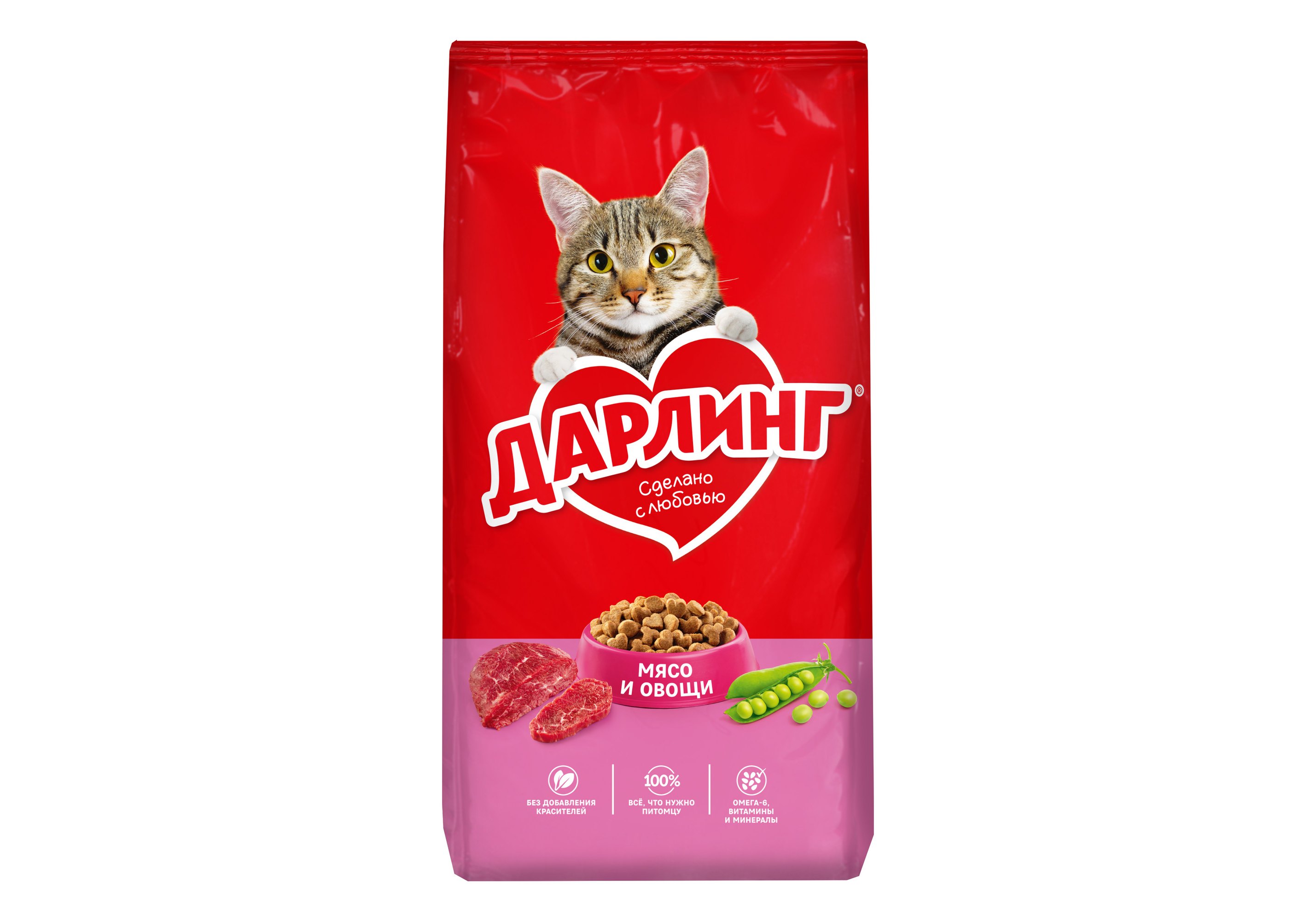 Корм ДАРЛИНГ для кошек - это сбалансированное питание, в котором содержится на 100% все, что нужно кошке каждый день. Он сделан с любовью из качественных ингредиентов, а также содержит Омега-6 жирные кислоты и витамины, необходимые Вашей кошке, чтобы быть здоровой, активной и дарить радость Вашей семье.
