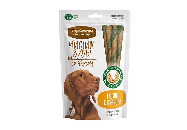 Деревенские лакомства Чистим зубы Лакомство для собак весом от 5 кг до 40 кг Роллы с Курицей 100 г