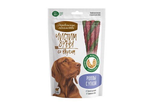 Деревенские лакомства Чистим зубы Лакомство для собак весом от 5 кг до 40 кг Роллы с Уткой 100 г