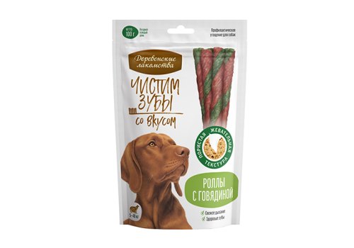 Деревенские лакомства Чистим зубы Лакомство для собак весом от 5 кг до 40 кг Роллы с Говядиной 100 г