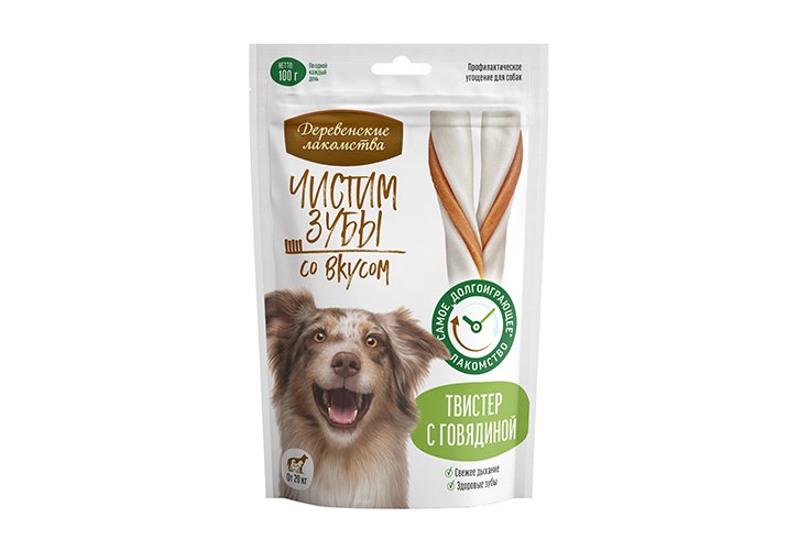 Деревенские лакомства Чистим зубы Лакомство для собак весом от 20 кг Твистер с Говядиной 100 г