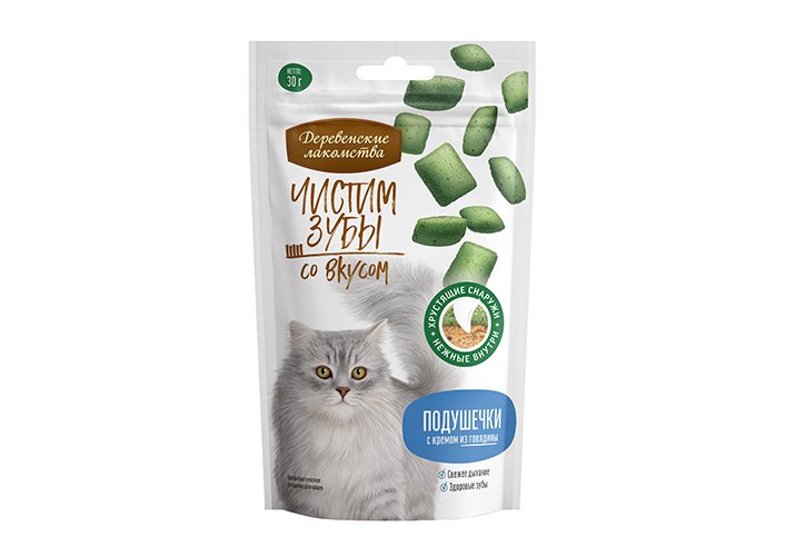 Деревенские лакомства Чистим зубы Подушечки для кошек с кремом из Говядины 30 г