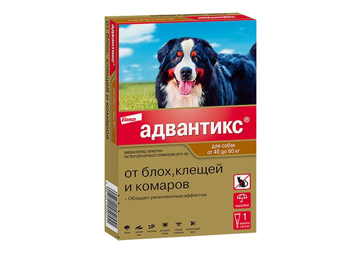 Elanco Адвантикс Капли на холку от Блох, Клещей и Комаров для собак весом 40 - 60 кг 1шт х 6,0мл