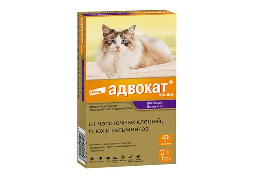 Elanco Адвокат Капли на холку от Чесоточных Клещей, Блох и Гельминтов для кошек весом 4-8 кг 1шт x 0,8мл