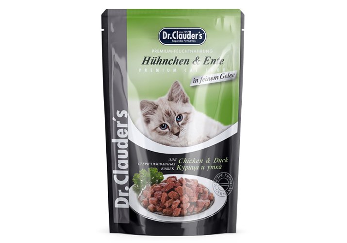 Dr.Clauder`s Паучи Доктор Клаудерс для Cтерилизованных кошек Курица & Утка кусочки в желе (цена за упаковку) 85г х 12шт