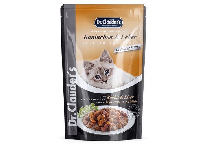 Dr.Clauder`s Паучи Доктор Клаудерс для Стерилизованных кошек Кролик & Печень кусочки в соусе (цена за упаковку) 85г х 12шт
